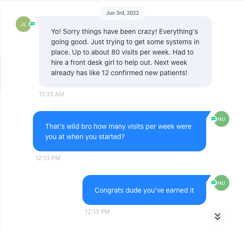 Bharon booked his "practice growth roadmap" session and took a brand new clinic from 30 to 175 visits per week in just under 6 months.