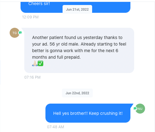 "Before I was having trouble getting new patients, and always felt a ton of pressure to close new business, after joining CGA it was life changing, while I am sleeping patients are booking on my calendar. In the first week we got 20 new patients"